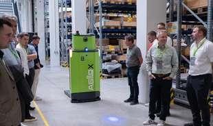 Bei einem «Automation Day» von Agilox gab es Einblicke in den Stand und die künftige Ausrichtung des Robotikanbieters, abgerundet durch Workflows, die - echten Praxisabläufen nachempfunden - gemeinsam mit einem Fanuc-Roboterarm und einem Palomaten die Interoperabilität mit den AMRs demonstrierten.